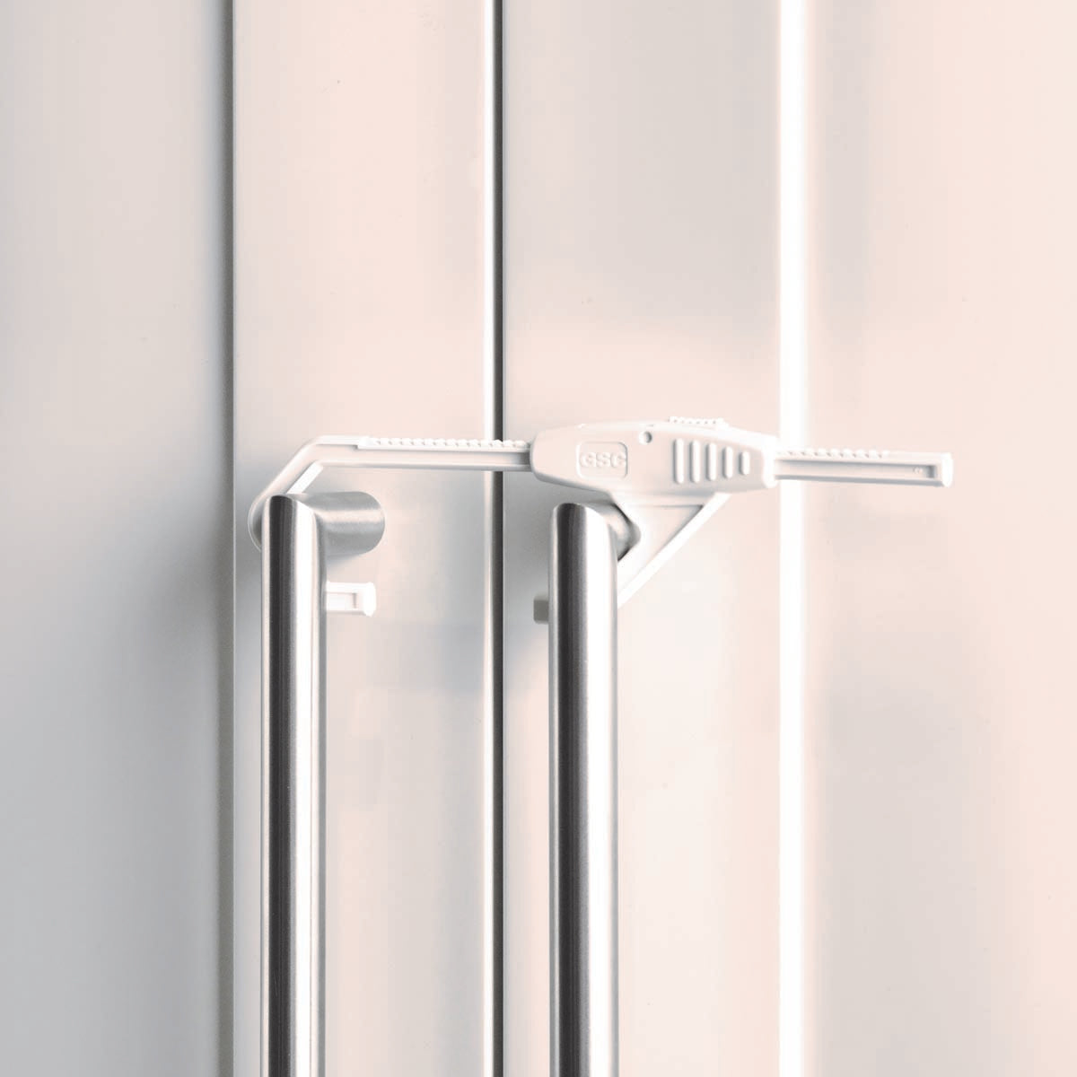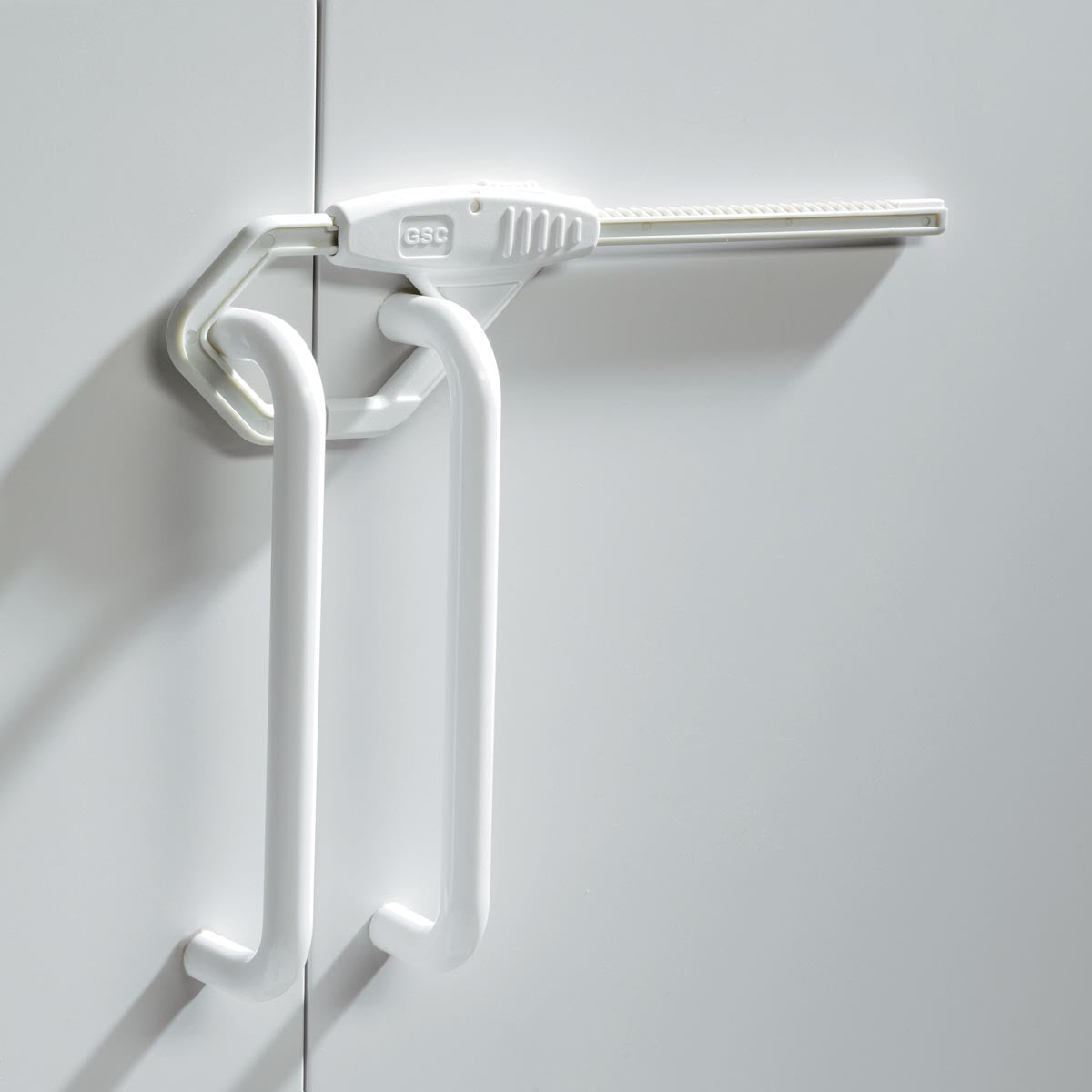 - Prevent curious children from getting their fingers caught in double cupboards doors with BabyDan's double cabinet slide lock.