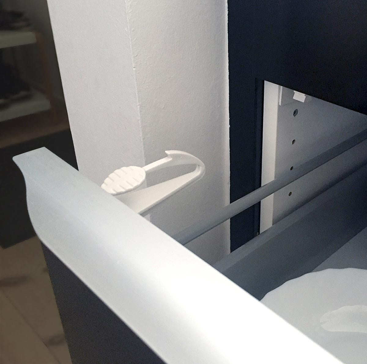 - Prevent curious children from getting their fingers caught in cupboards and drawers with BabyDan's Easy Fix Cupboard and Drawer Lock.