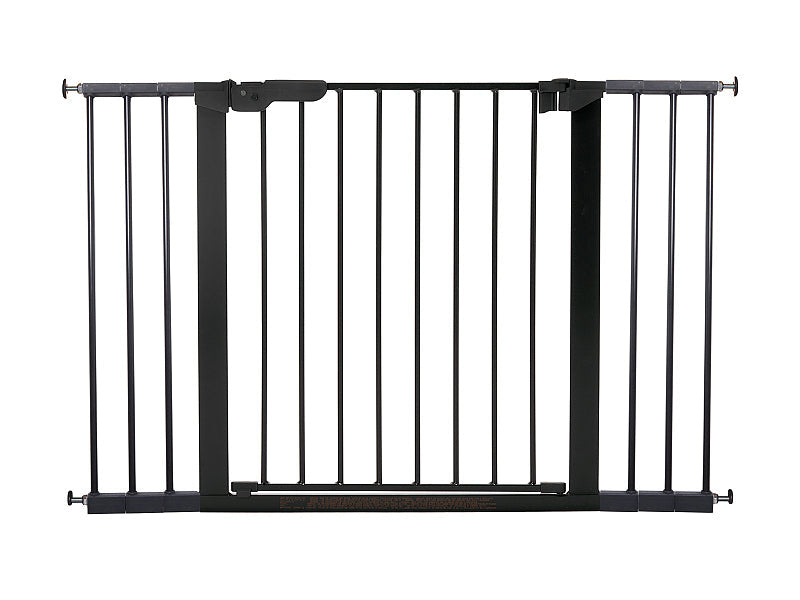 The pressure gate option is very popular as you can avoid drilling into the walls or door frames (beware that many competitor 'pressure' gates require wall cups at all times which in turn are installed with screws). The gate door opens in both directions and has a cross bar at floor level which may pose a trip hazard and care needs to be taken when installing the gate near stairs or steps.