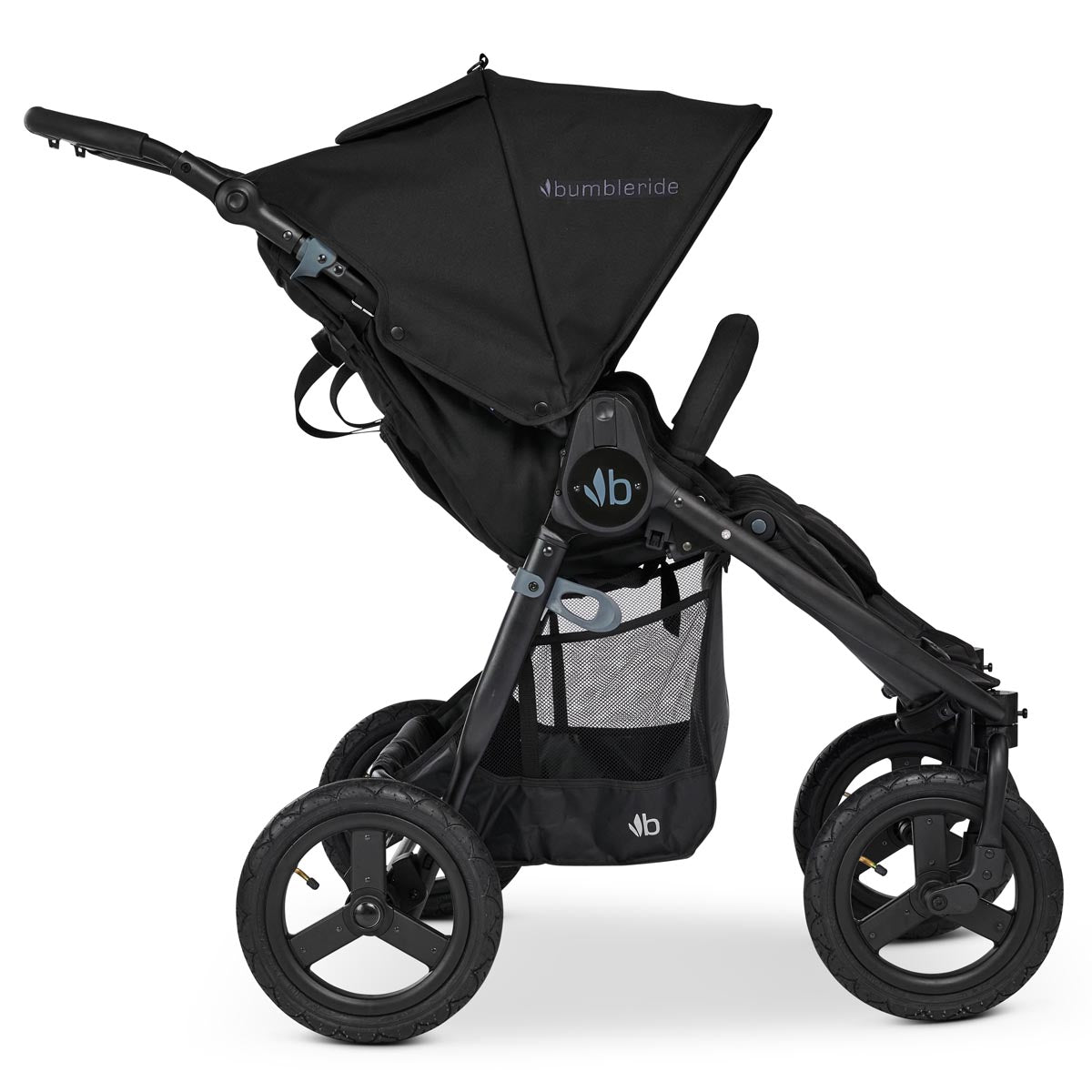 Bumbleride prioritises eco-focused materials and sustainable manufacturing. The stroller also contains fabric and components made from recycled PET bottles and fishing nets. The fabrics are solution dyed to reduce pollution and for long-lasting colourfast results.