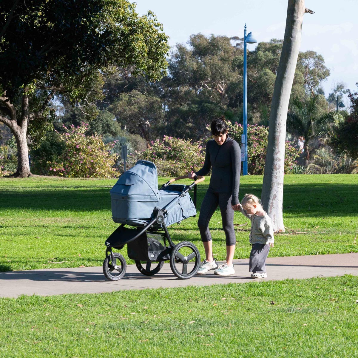 The Bumbleride Speed jogging pram is ideal for parents who run. It is a purpose-built running pram with a 12” front & 16” tyres at the rear. All are air-filled and combined with the superior suspension, it means the Bumbleride Speed glides effortlessly across all-terrain.