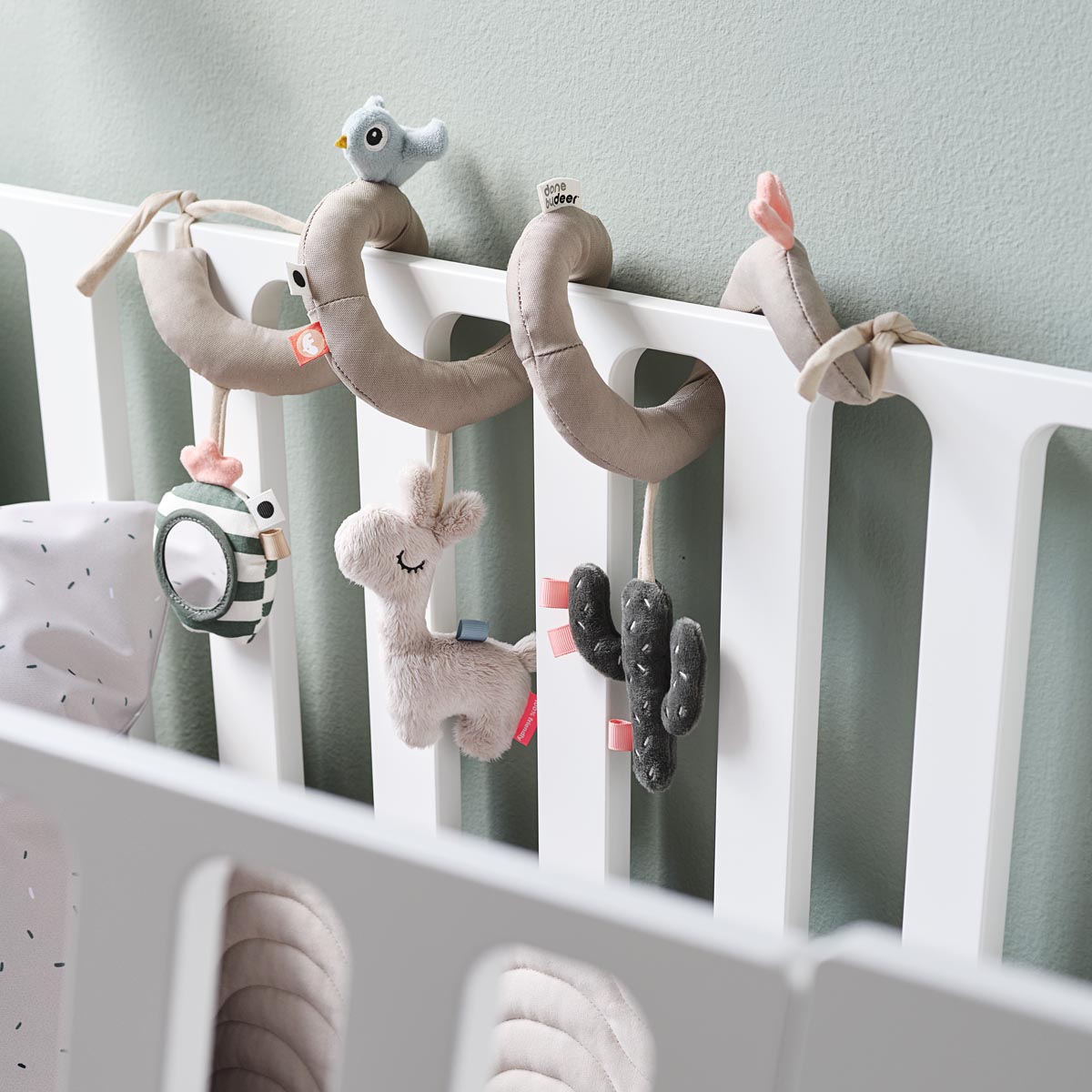 This Activity Spiral is one of the best and most popular baby toys from Done by Deer. It fits on the pram, the cot, the car seat, has a variety of toys as well as a teething ring to stimulate your baby plus it looks super cute.