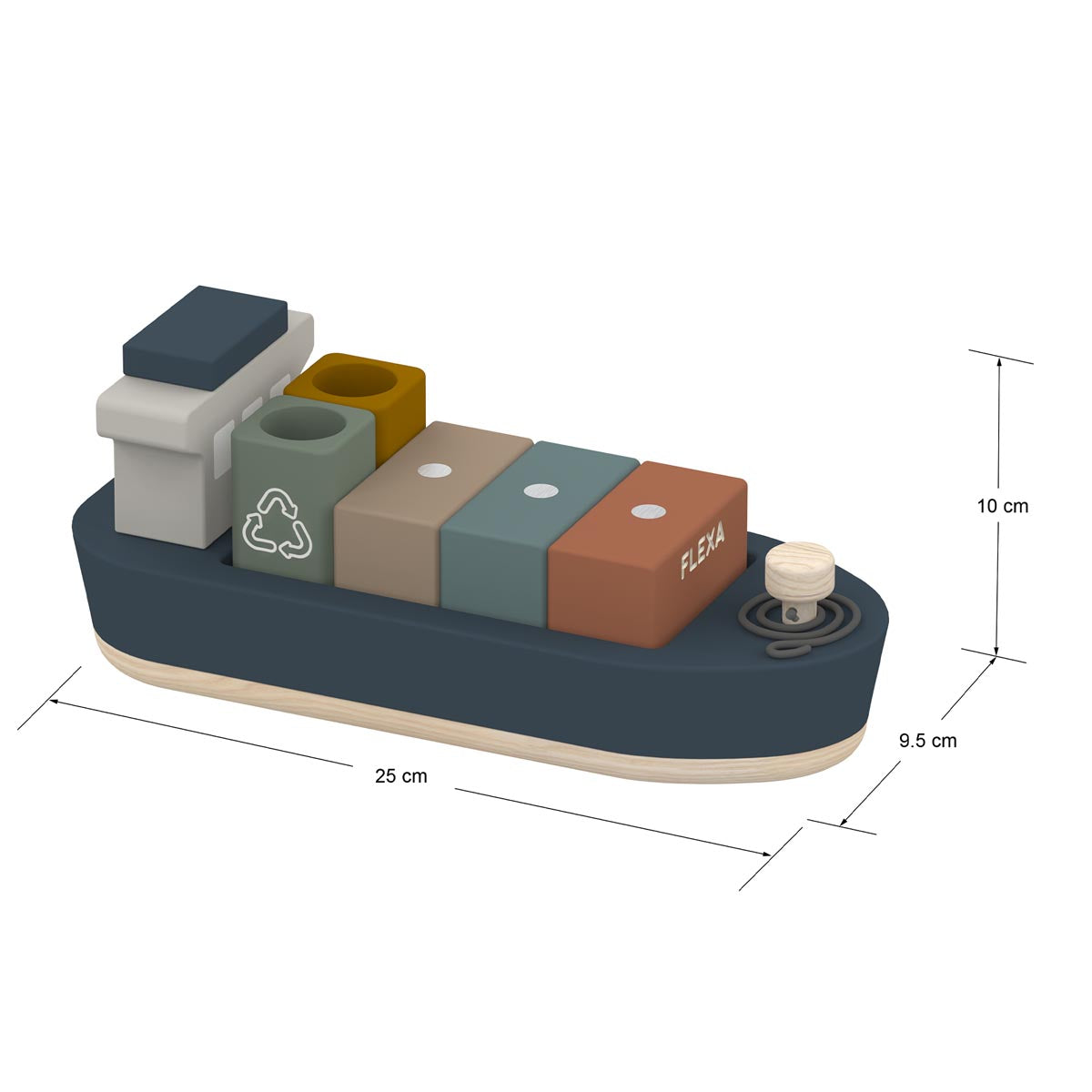 Enrich imaginative play and strengthen fine motor skills with Flexa's Container Ship and containers.