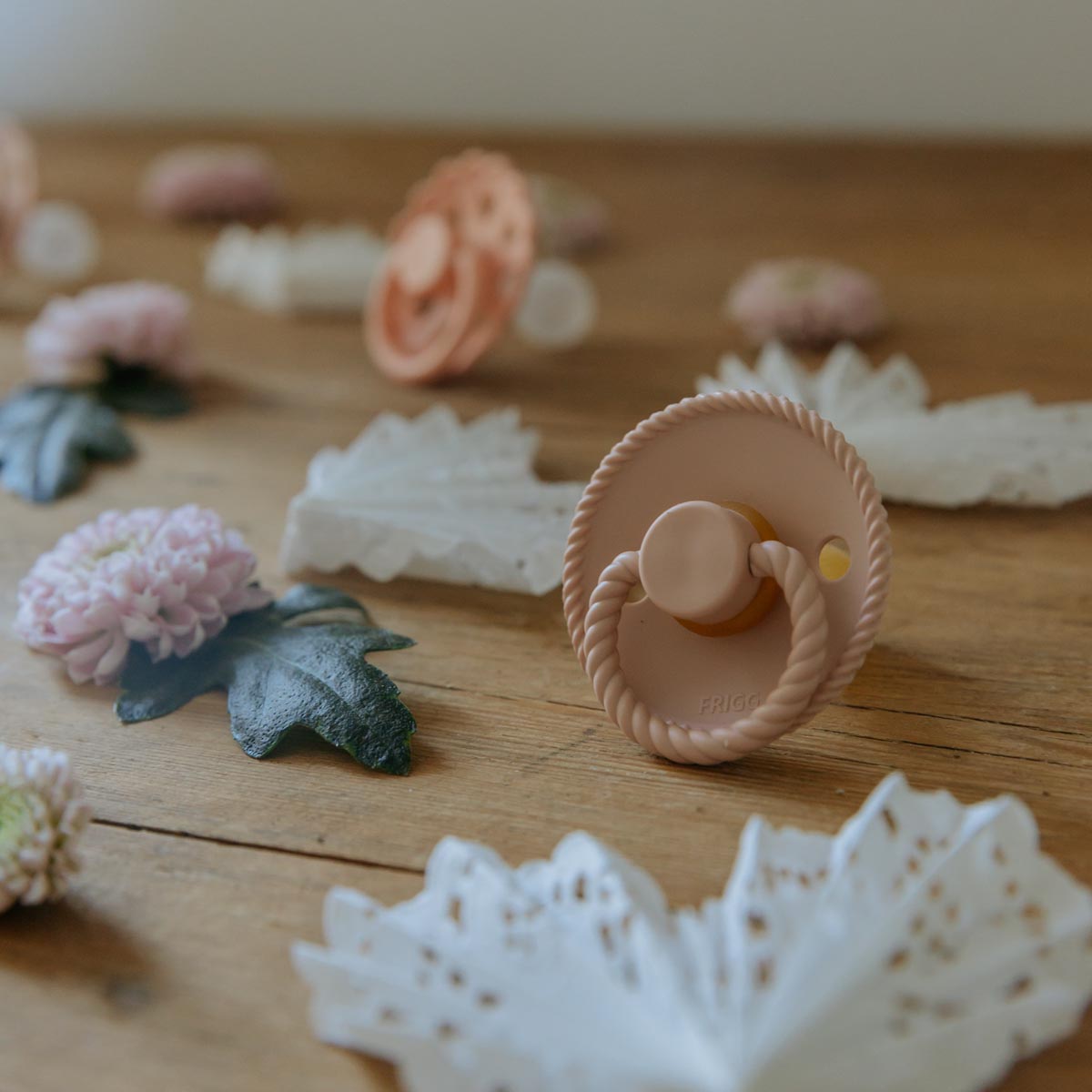 FRIGG Rope Pacifier – It symbolizes safety and features a thin rope encircling the shield, while a thicker one forms its handle, reflecting the enduring connection between a mother and child. FRIGG Rope signifies the strong and unbreakable bond between mother and baby, ensuring comfort and reassurance with every use.